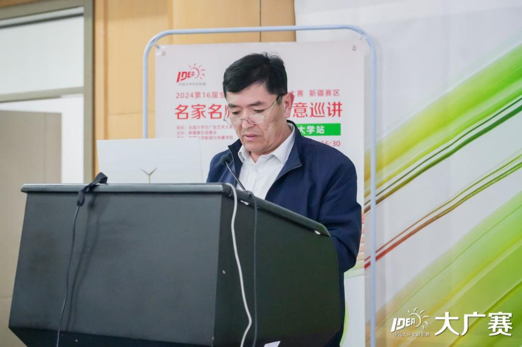 4月24日下午,第16届全国大学生广告艺术大赛新疆赛区名家名师校园创意巡讲活动在新疆大学红湖校区9号教学楼二楼报告厅举办。本次活动由全国大学生广告艺术大赛组委会组织,大广赛新疆赛区组委会主办,yl23455永利官网承办。yl23455永利官网党委书记吐尔逊托合提·阿塔吾拉,学院党委委员、副院长杜松平,大广赛新疆赛区组委会代表、新疆大学纺织与服装学院教授赵志明,中国高等教育学会广告教育专业委员会副秘书长、厦门大学教授罗萍,大广赛组委会秘书处教师李勤以及大广赛命题广告品牌代表出席,各学院师生代表参加此次活动。