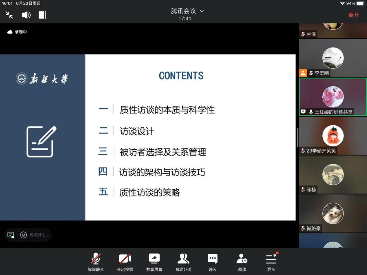 6月23日下午,yl23455永利官网成功举办《质性研究中访谈技巧》学术讲座。讲座由李宏刚副院长主持,学院部分教师和硕士研究生积极参与。王红缨副教授以其深厚的学术背景和丰富的实践经验,为大家带来了一场关于做学术研究时,如何用质性研究的访谈法做好研究。