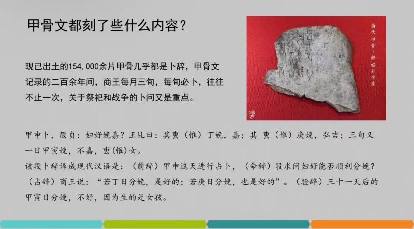董老师还对文字的起源和发展进行了深入分析,指出全世界的表音文字几乎都拥有一个共同的祖先——古埃及的象形文字。同时,他也提到了汉字的独特性,强调了甲骨文作为独立发明的文字体系,对研究中华文明起源的重要性。