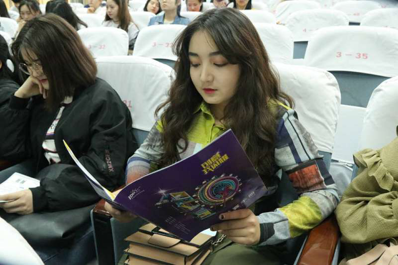 巡讲第三项是由杭州娃哈哈集团有限公司的饮料市场部经理蒋晓莉女士为学生介绍娃哈哈产品的相关命题。她展示了娃哈哈杭州总部公司的基本情况及被娃哈哈公司采用并投入生产的学生参赛作品,鼓励大家发挥想象力,积极参与创作。她还在现场播放了几段“网红”视频,为学生介绍娃哈哈产品是如何在互联网上传播与持续发酵的。最后,她分析了此次娃哈哈产品的广告命题,对于这次创意的广告,只有一个字“无”,不拘泥于形式,不限制创意,希望大家能够充分展现自已的实力。